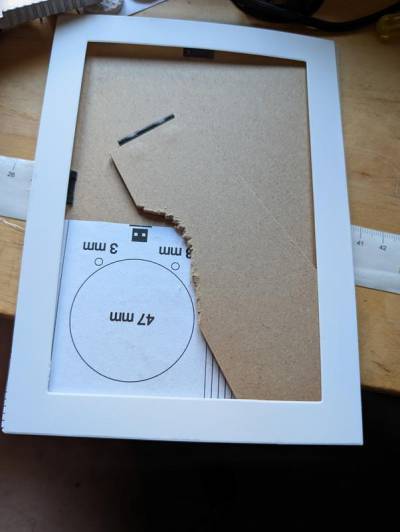 Die Papp- Rückwand aus dem Bilderrahmen nehmen und